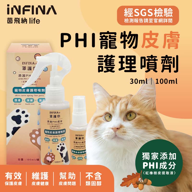 幸好找到INFINA的寵物皮膚護理噴劑,裡面有添加PHI提取夜,可以有效幫助皮膚健康,固定每天我都會幫米寶噴,而且是可食用,毛小孩舔了也沒有問題。目前用了一個月,紅腫跟膿包已經完全不見了!